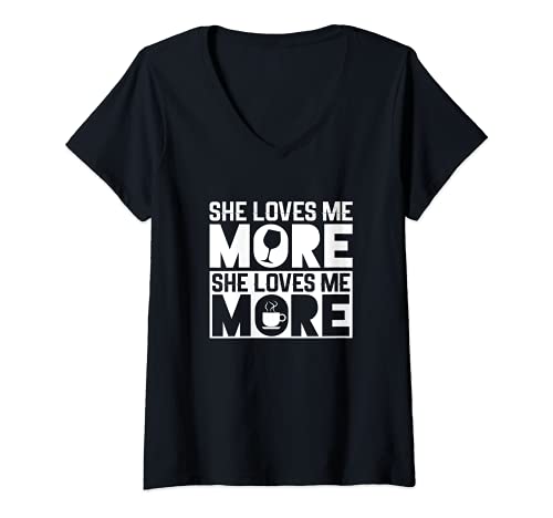 Mujer she loves me more wine vs coffee lover girls travel funny gift camiseta cuello v