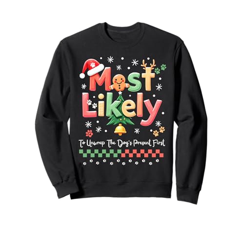 Most likely to unwrap dog's present first funny christmas sudadera