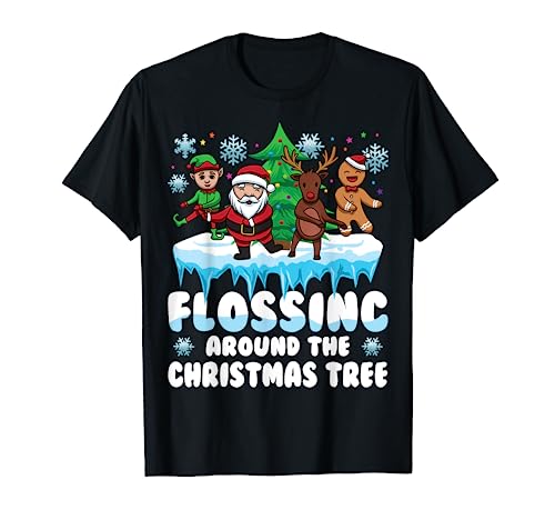 Santa deer gingerbread flossing around the christmas tree camiseta