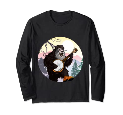 Bigfoot tocando banjo guitarra sasquatch manga larga