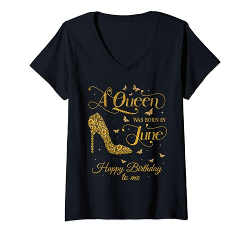 Mujer a queen was born in junio happy birthday to me queen birthday camiseta cuello v