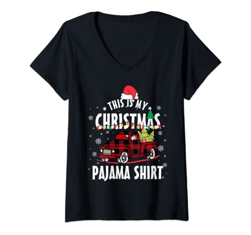 Mujer this is my christmas pijama shirt truck funny santa hat xmas camiseta cuello v