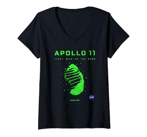 Mujer nasa apollo 11 misión astronauta huella 20 julio 1969 camiseta cuello v