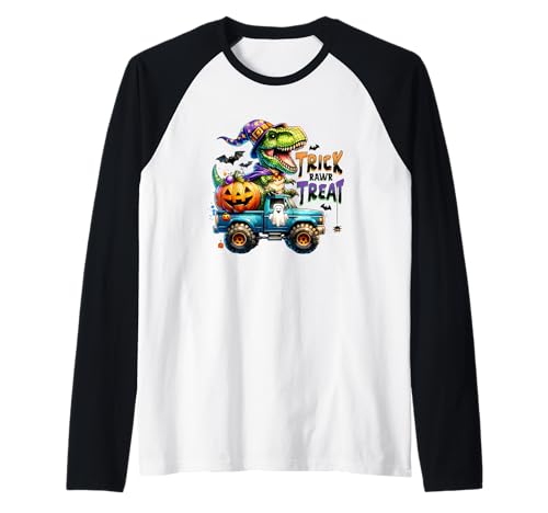 Trick rawr treat t-rex dinosaurio monster truck niños halloween camiseta manga raglan