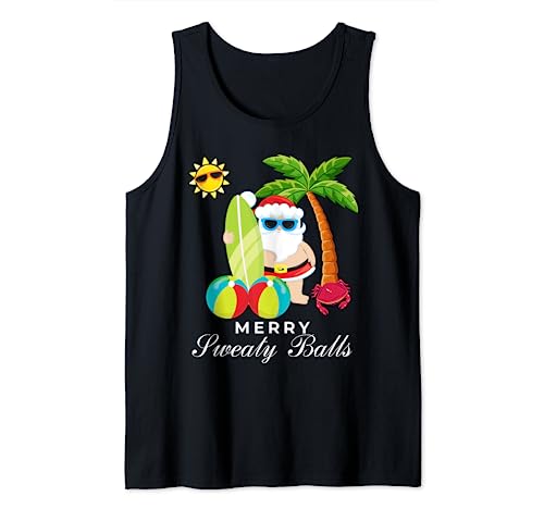 Christmas in july funny merry sweaty balls santa surfing camiseta sin mangas