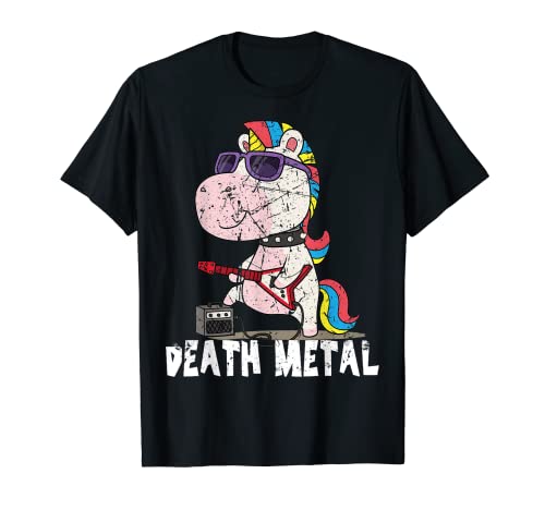 Divertido unicornio death metal heavy unicorn retro humor camiseta