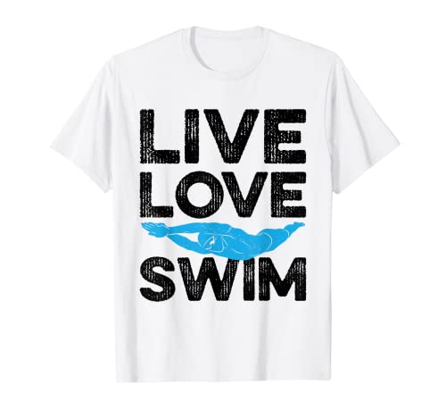 Funny live love swim graphic para mujeres y hombres nadadores camiseta