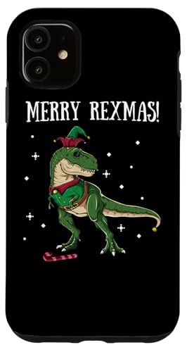 Carcasa para iphone 11 merry rexmas t-rex elf dinosaur elves christmas dino gift