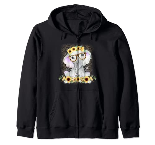 Elefante girasol lindo elefante amante regalo leopardo sudadera con capucha