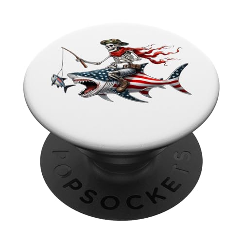 Bandera americana de tiburón con esqueleto pescador popsockets popgrip adhesivo