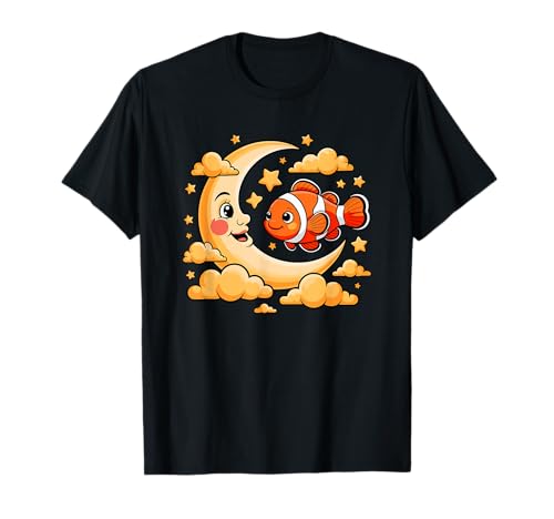 Crescent moon clouds pez payaso camiseta
