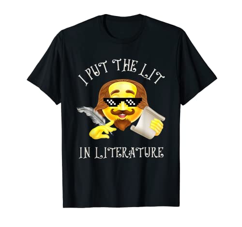 Emoticono de shakespeare con texto en inglés i put the literature camiseta