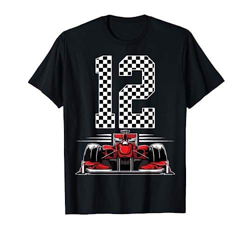 Bandera a cuadros de 12 cumpleaños para coche de carreras de doce 12 años camiseta