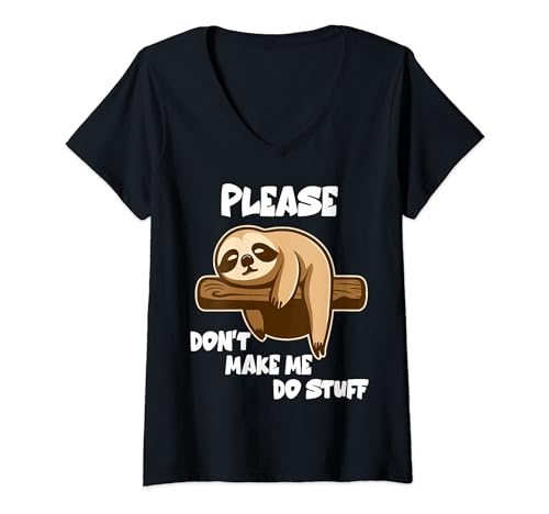 Mujer please don't make me do stuff funny lazy perezoso estado de ánimo camiseta cuello v