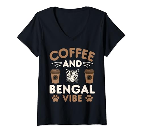 Coffee & bengal cat camiseta cuello v