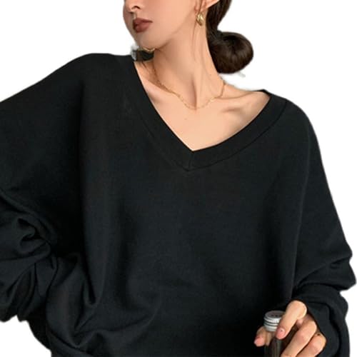 Camiseta de manga larga para mujer oversize tops moda con cuello en v sexy y2k topde camiseta blusas básica de color sólido negro/l