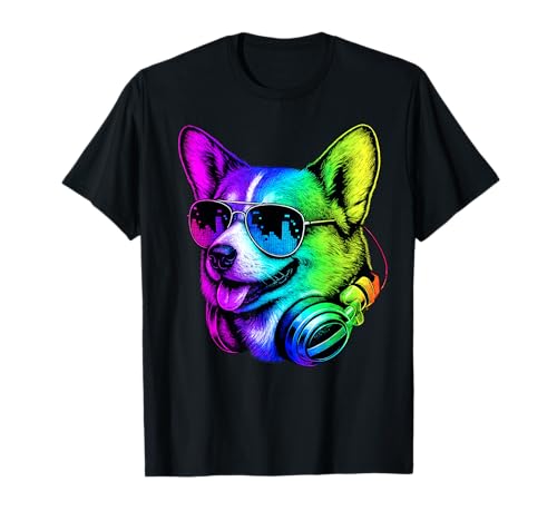 Corgi dj auriculares retro music dog lover camiseta