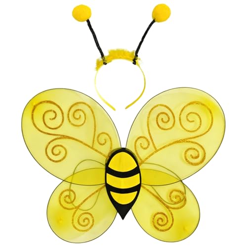 Lindo conjunto de disfraz de abeja que incluye ala amarilla y diadema con antena para cosplay de halloween