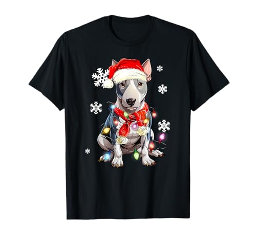 Bull terrier perro navidad luz pijama mascota navidad camiseta