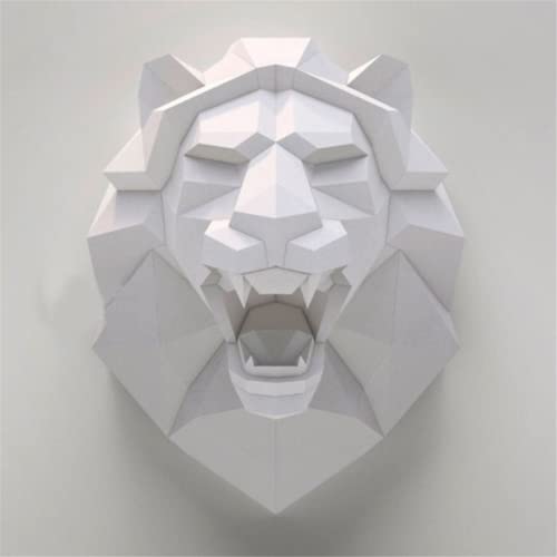 ¿Ya conoces el Cabeza de león modelo de papel 3d escultura animal león papercraft diy artesanía papel geométrico artesanía origami para decoración de sala de estar?
