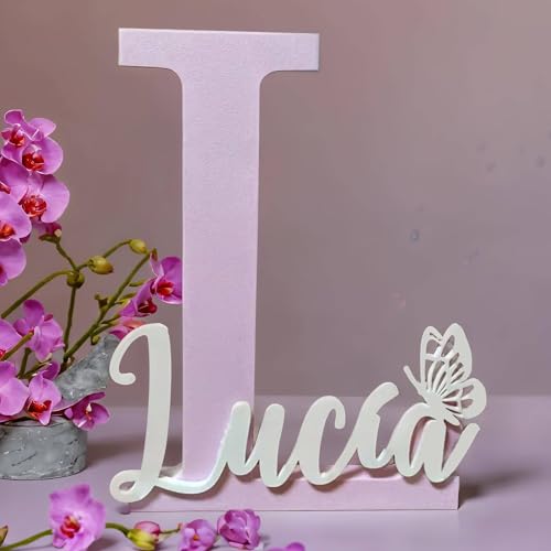 Letra decorativa personalizada con mariposa corona o cohete