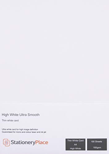 Stationery place thin white card 160 gsm high white ultra smooth a4 100 sheet pack