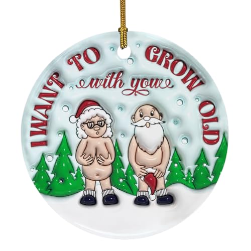 Divertido adorno de cerámica de navidad para parejas mayores