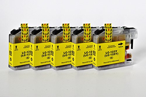 Printing saver lc-123/lc-125 pack de 5 amarillo cartuchos de tinta compatibles para brother dcp-j132w dcp-j152w dcp-j552dw dcp-j4110dw mfc-j470dw mfc-j4410dw mfc-j4510dw mfc-j4610dw j6520dw j6920dw