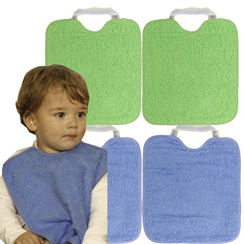Lote de 4 baberos con cierre de goma para bebés de 6 a 18 meses