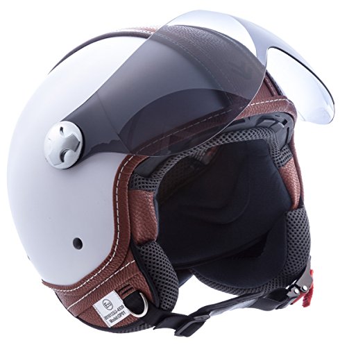 White · casco moto demi jet · scooter urban motocicleta urbano helmet retro · ece certificado · visor · click