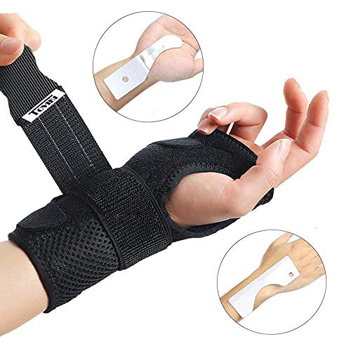 Muñequera férula transpirable izquierda con 2 férulas metálicas para túnel carpiano fracturas y dolor de muñeca esguinces negra