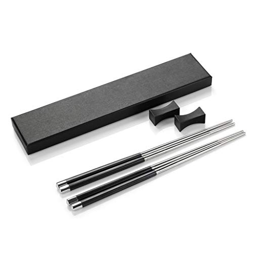 2 juegos de palillos chinos de aleación palillos de palillos palillos de acero inoxidable con soporte juego de palillos chinos cubiertos asiáticos con cofre negro