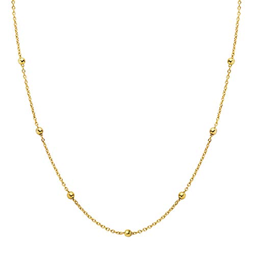 • Collar cadena plata de ley 925 bolitas 40 cm cierre reasa bañado oro amarillo