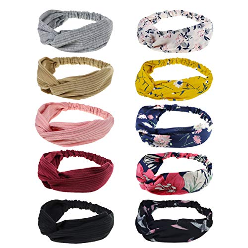 Boho diademas para mujeres flor vintage impreso criss cross anudado elástico banda para el cabello stretchy head wrap twisted accesorios para el cabello lindo paquete de 10