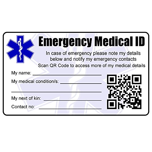 Medical identity card emergency id credit card size fits wallet or purse