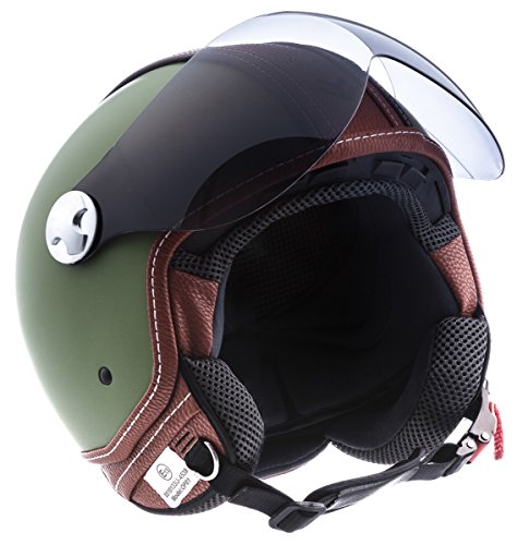 Green · casco moto demi jet · scooter urbano motocicleta urban retro helmet · ece certificado · visor · click