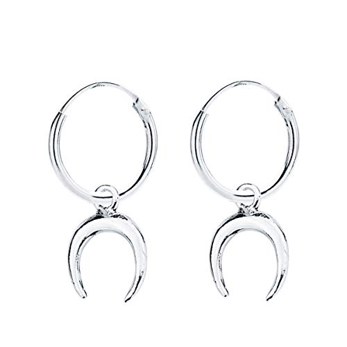 Pendientes aros lisos 12 mm luna invertida 11mm mujer niña plata de ley 925