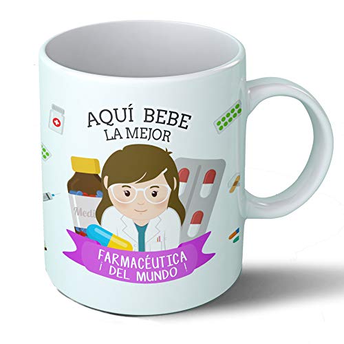 Taza desayuno aquí bebe la mejor farmacéutica del mundo regalo original farmacia ceramica 330 ml