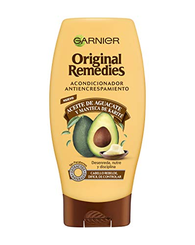 Garnier original remedies aceite de aguacate y manteca de karité acondicionador para pelo rebelde y encrespado