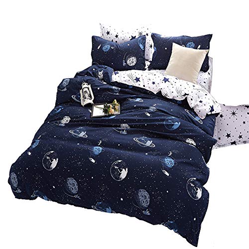 Juego de ropa de cama ?piezas para cama 105cm funda de edredón 180x220cm sábana 230x230cm funda de almohada 48x74cm poliéster color azul oscuro forma galaxia