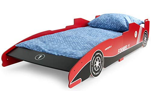 Estos días la tienda donde puedes encontrar Cama infantil de madera 200/90 con colchón para niños muebles para niños dormitorio corazón tema: fórmula 1 color: rojo es la tienda Amazon