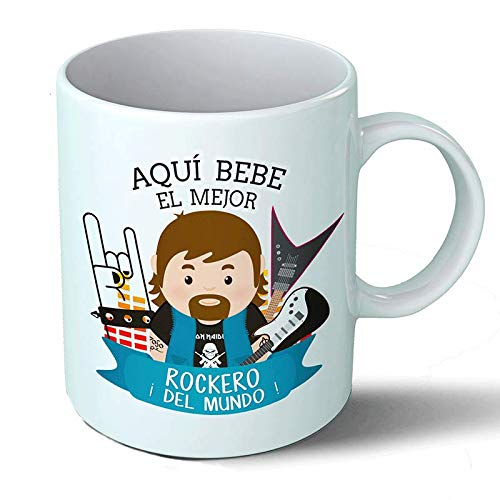 Taza desayuno aquí bebe el mejor rockero del mundo regalo original musica rock ceramica 330 ml