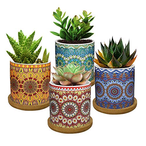 4 pzs 2.8 inch conjunto de contenido plantador con bandeja de bambú y agujero para suculenta