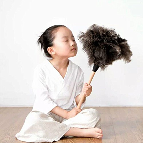 Plumero natural plumero avestruz plumero suave plumas plumero resistente plumero equipado con un mango de madera de bambú color negro