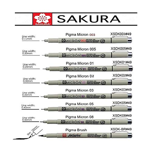 Sakura finetek pigma micron tutto nero 8 pennini set.003.005,01,02,03,05,08