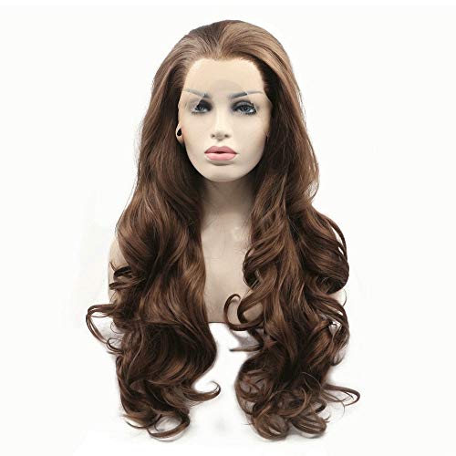 6# peluca de color marrón oscuro ondulada natural de alta temperatura línea de pelo de color puro sintético peluca frontal para drag queen mujeres fiesta boda 22 pulgadas