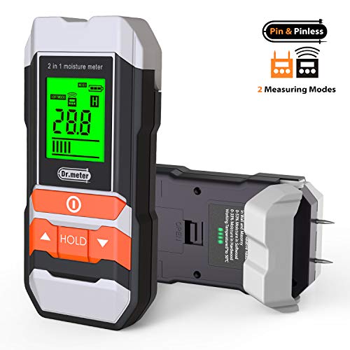 [Actualización] Medidor de humedad de madera Dr.meter. Multifuncional 2 en 1, con y sin clavos. Detector de agua en leña/pared/edificios/muebles, con alfiler o tipo escáner.