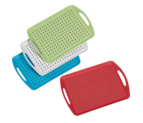 Juego de 4 bandejas antideslizantes de plástico con superficie de goma antideslizante