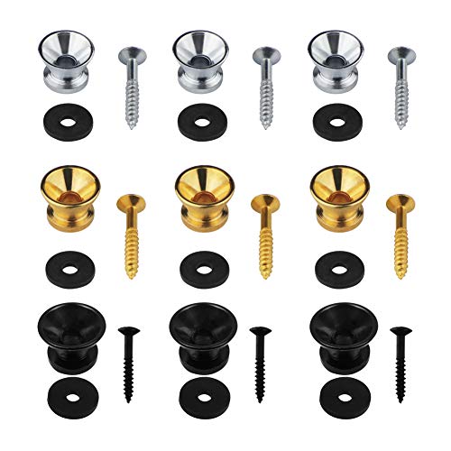 Botones de correa de guitarra patillas finales saiyu paquete de 9 correas de guitarra de metal pasadores con tornillos y cojines de goma para guitarra acústica eléctrica