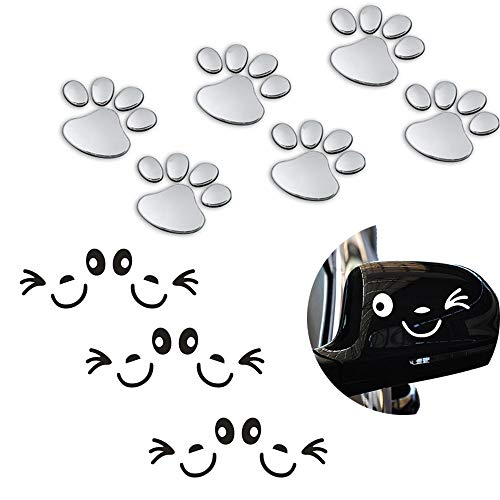 12pc 3d silver chrome dog paw huella etiqueta engomada del coche sonrisa cara etiqueta ala espejo puerta autoadhesiva blanco y negro